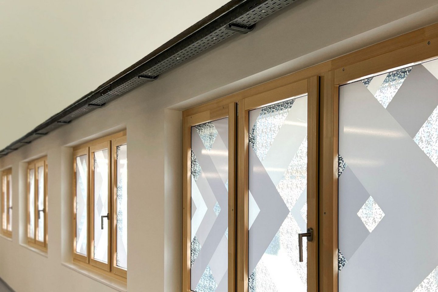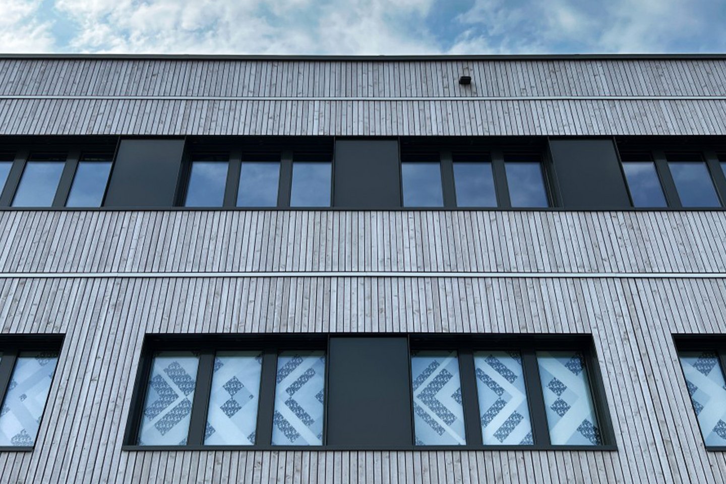 Die grossen Fensterfronten des Gebäudes werden mit einem ans CI/CD der SBB angelehnten Muster beklebt, sodass der praktische Nutzen (nicht von aussen einsehbare Garderoben) mit einem optischen Mehrwert kombiniert werden kann.
