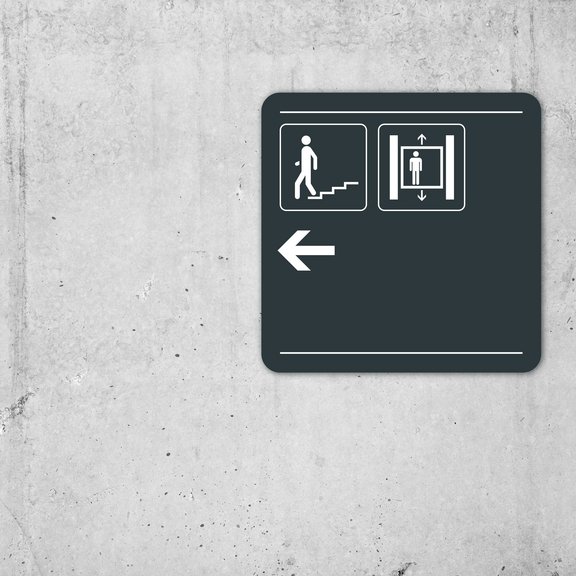In allen Stockwerken sorgen Übersichtsschilder und Wegweiser bei Treppen, Liften oder in den Gängen für eine ideale Personenführung.